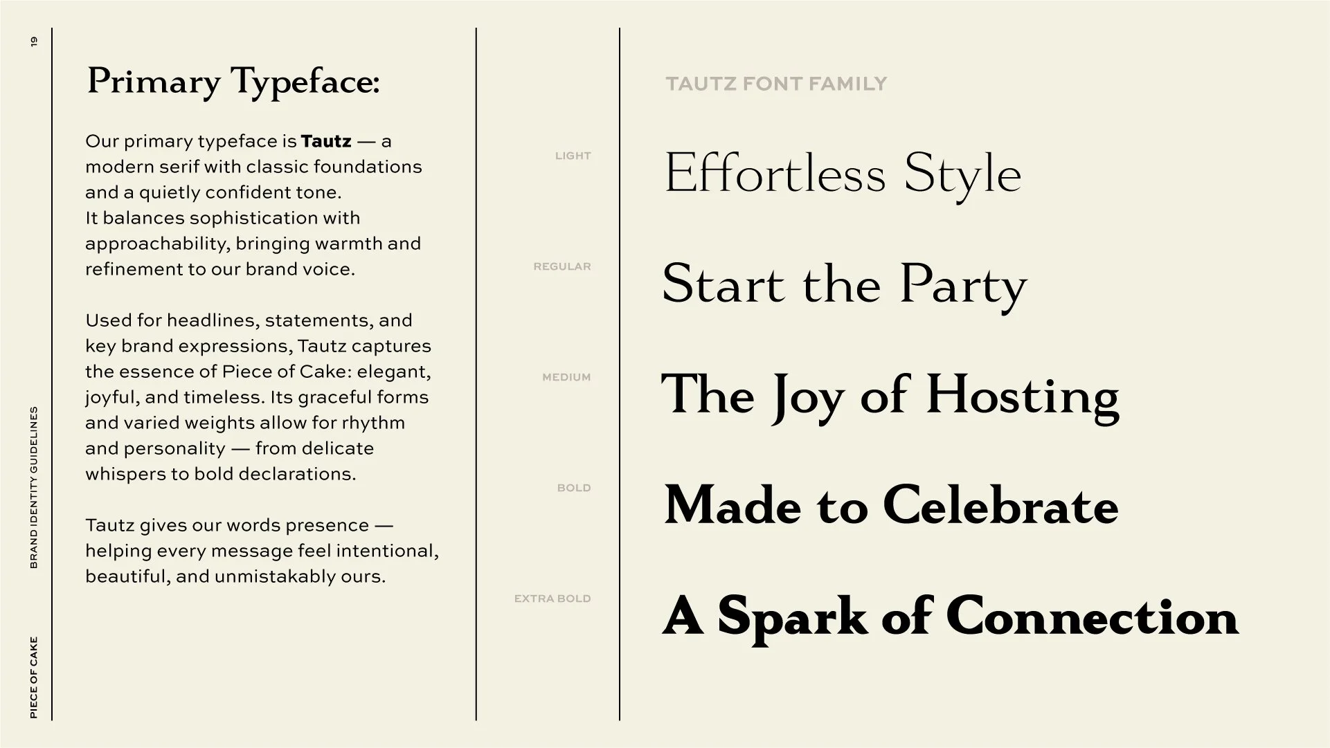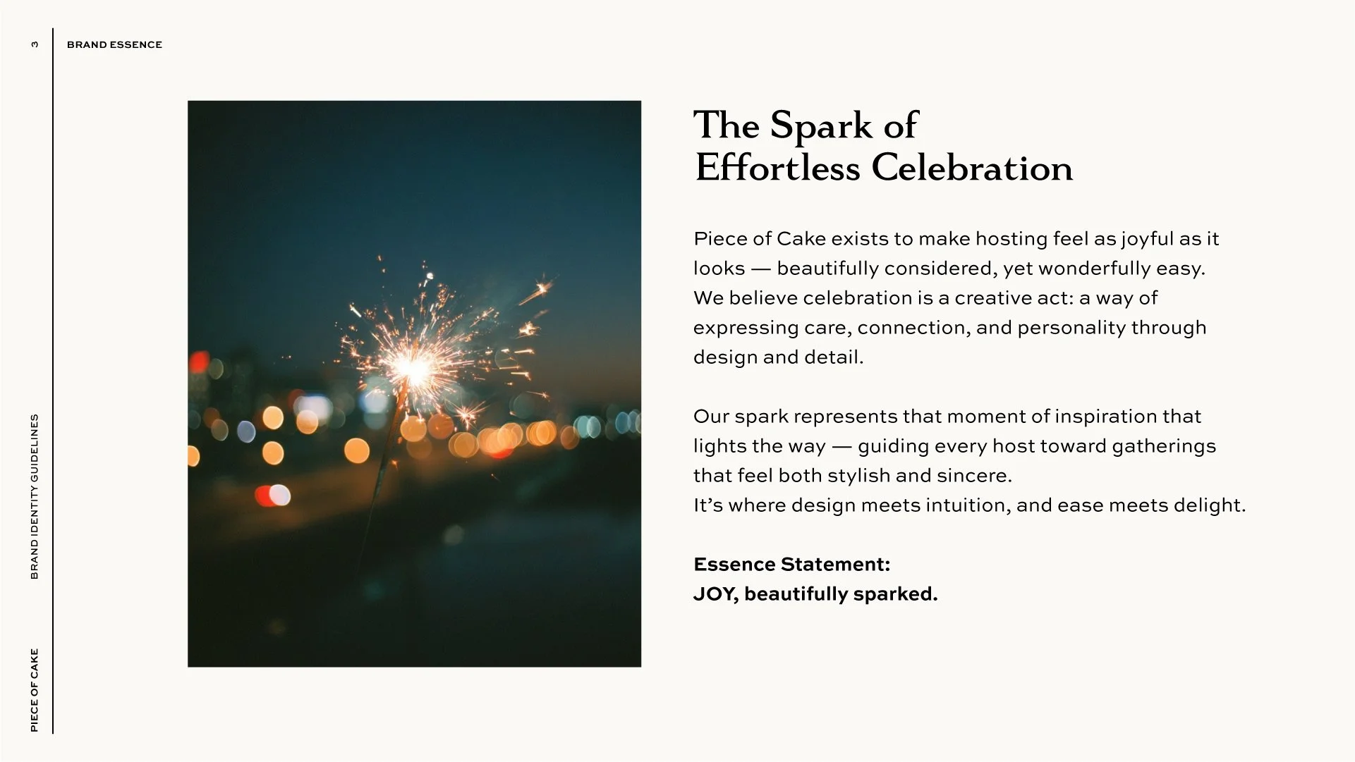 For Piece of Cake, I began with the brand strategy—defining the positioning, tone of voice, and emotional territory that would guide everything to come. From there, I led the creative direction and brand development from the ground up, crafting a world that celebrates the art of joyful hosting. What started as a boutique party-favor concept evolved into a design-led lifestyle brand defined by its playful sophistication, witty tone, and editorial eye for detail.